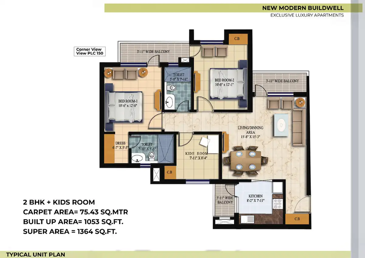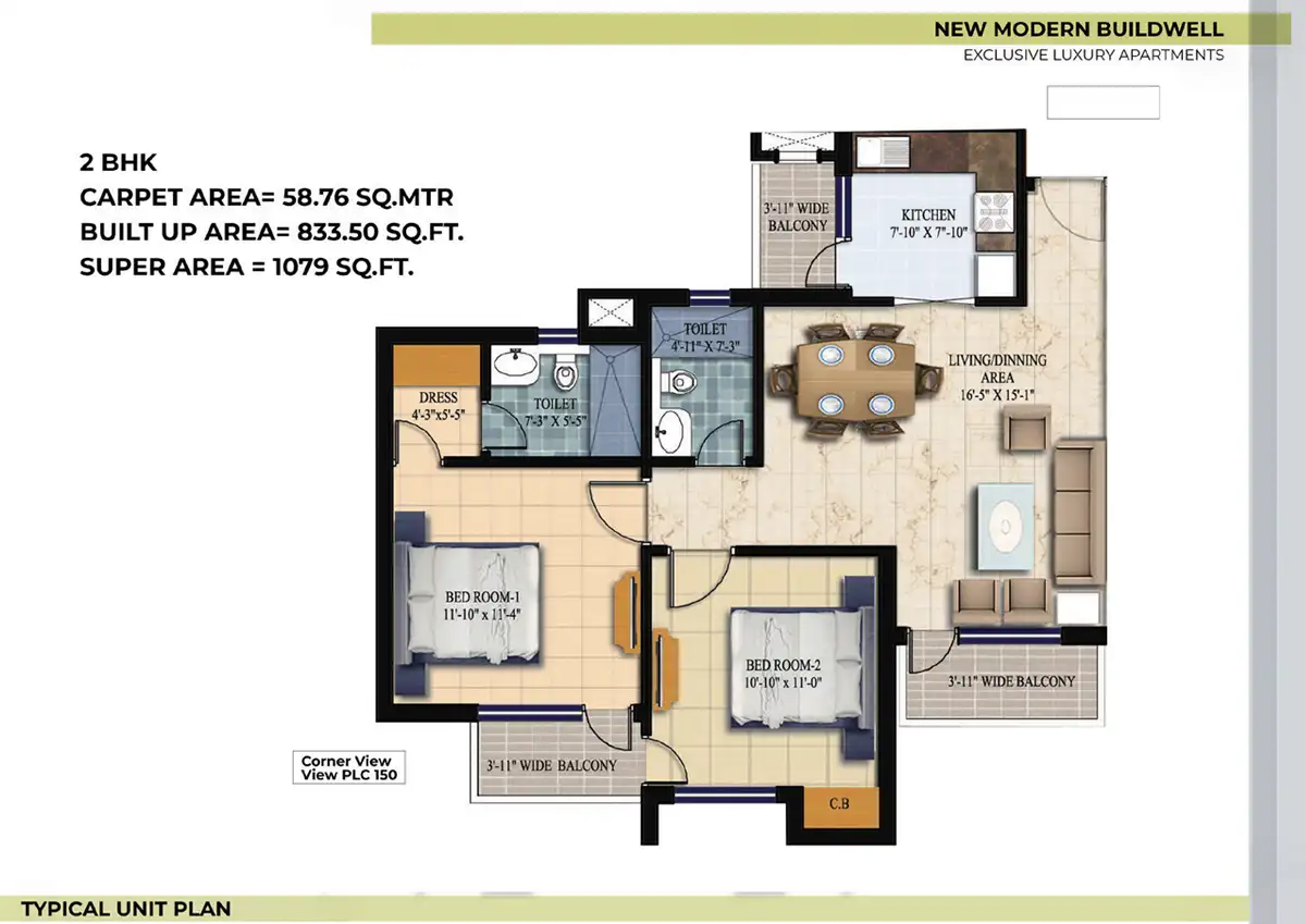 2 BHK + 2 BHK with study Bedroom Premium Residences